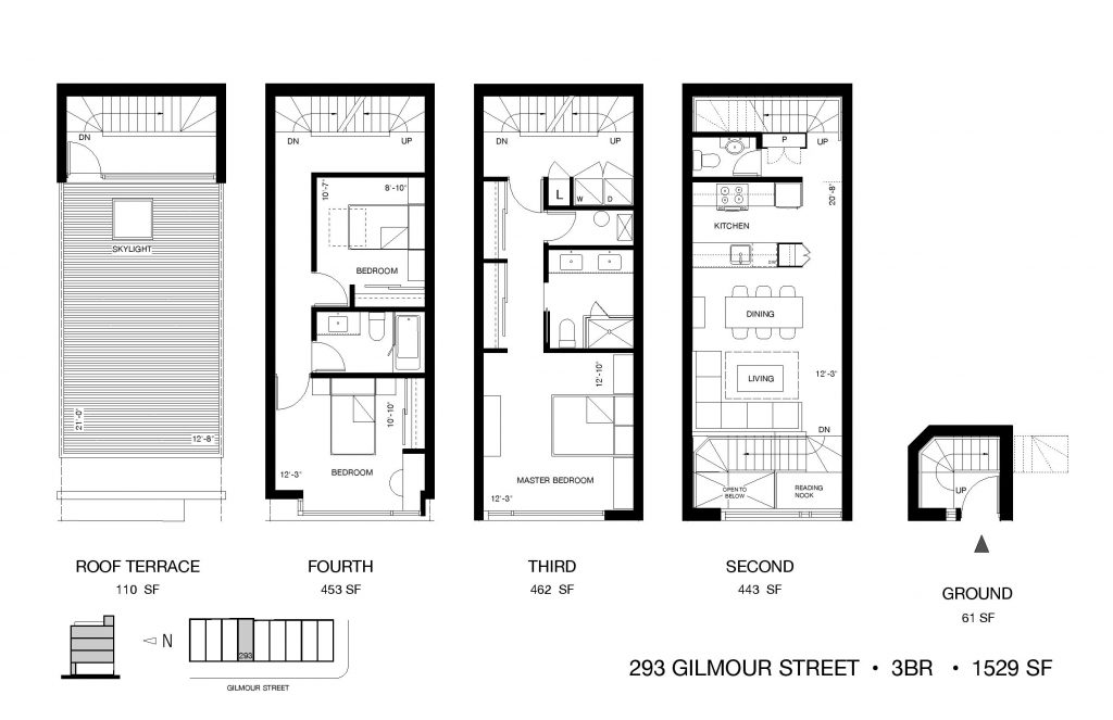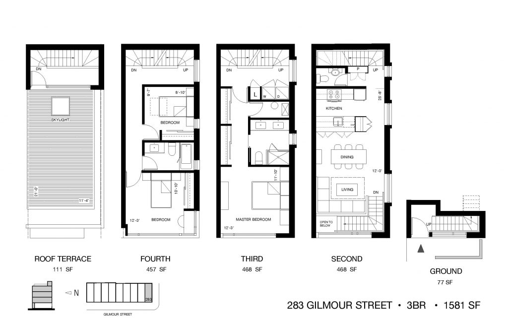 Deco Towns is a new townhouse development by Terra Firma Homes. Prices estimated from $995,900 for all units. The project currently will feature 9 modern 4 storey+ Rooftop townhomes and will be located on Gilmour Avenue at Dundas Street West, Toronto.