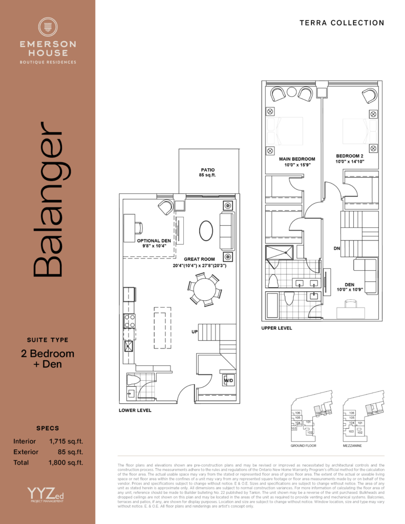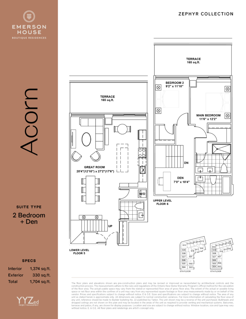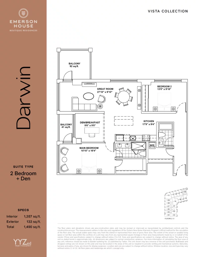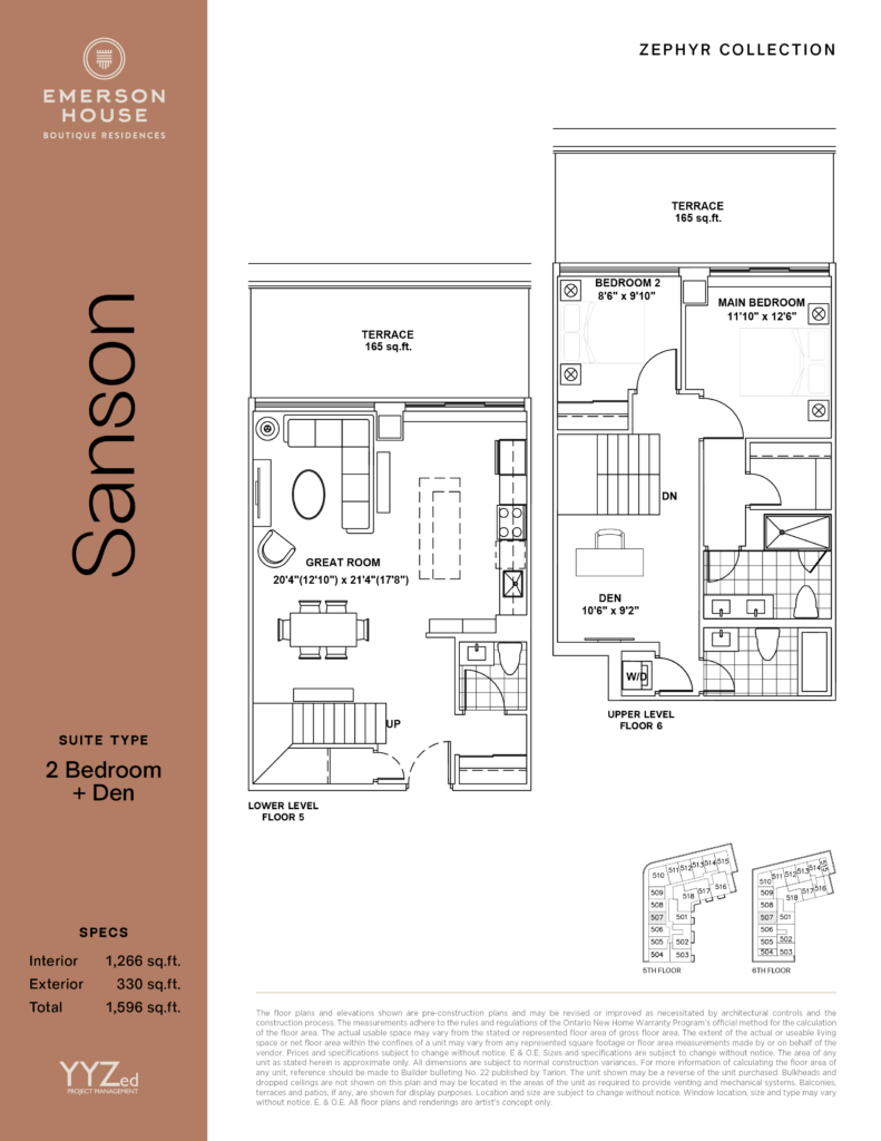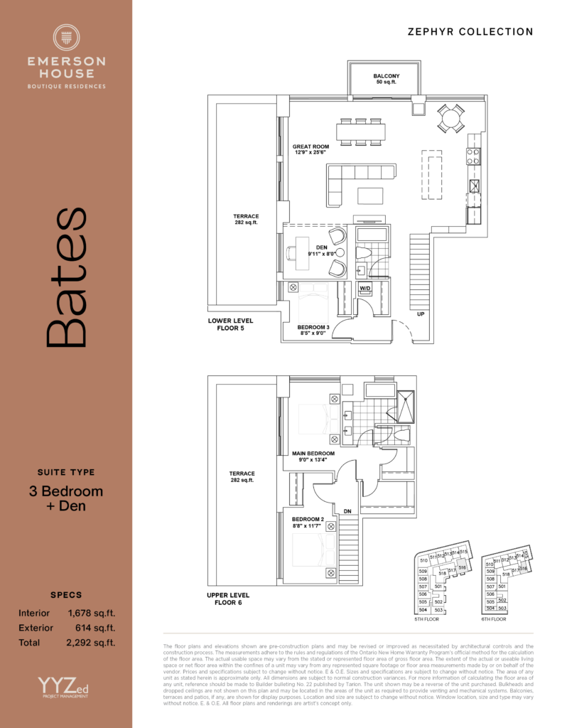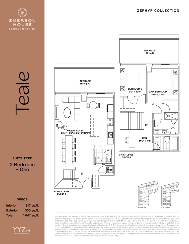 Emerson House is a modern and sophisticated residential building in the heart of Mississauga, Ontario. It offers a comfortable and convenient living experience with a range of amenities, modern features, and a desirable location. With 1, 2 and 3 bedrooms with optional den, ranging in size from 767 to 2,555 square feet, Emerson House provides a variety of options to fit your lifestyle. Enjoy a fitness centre, party room, and rooftop terrace with BBQ stations, or take advantage of the building's energy-efficient design.