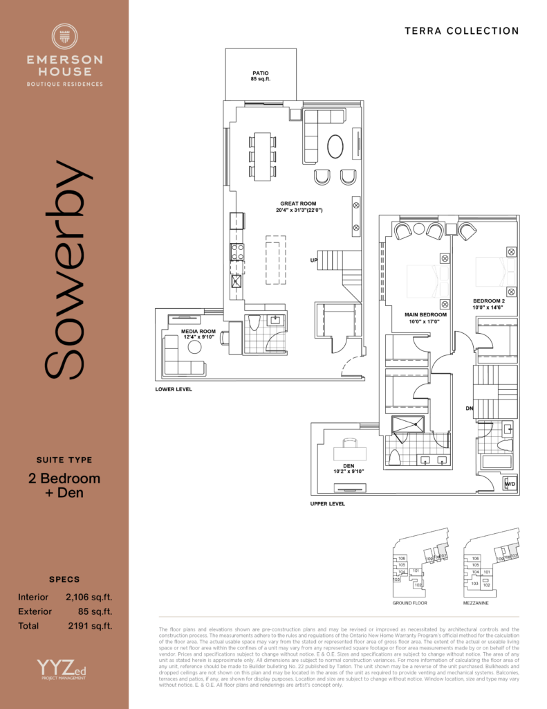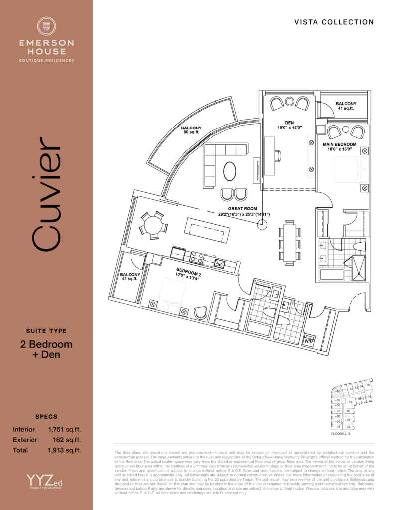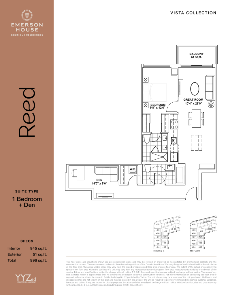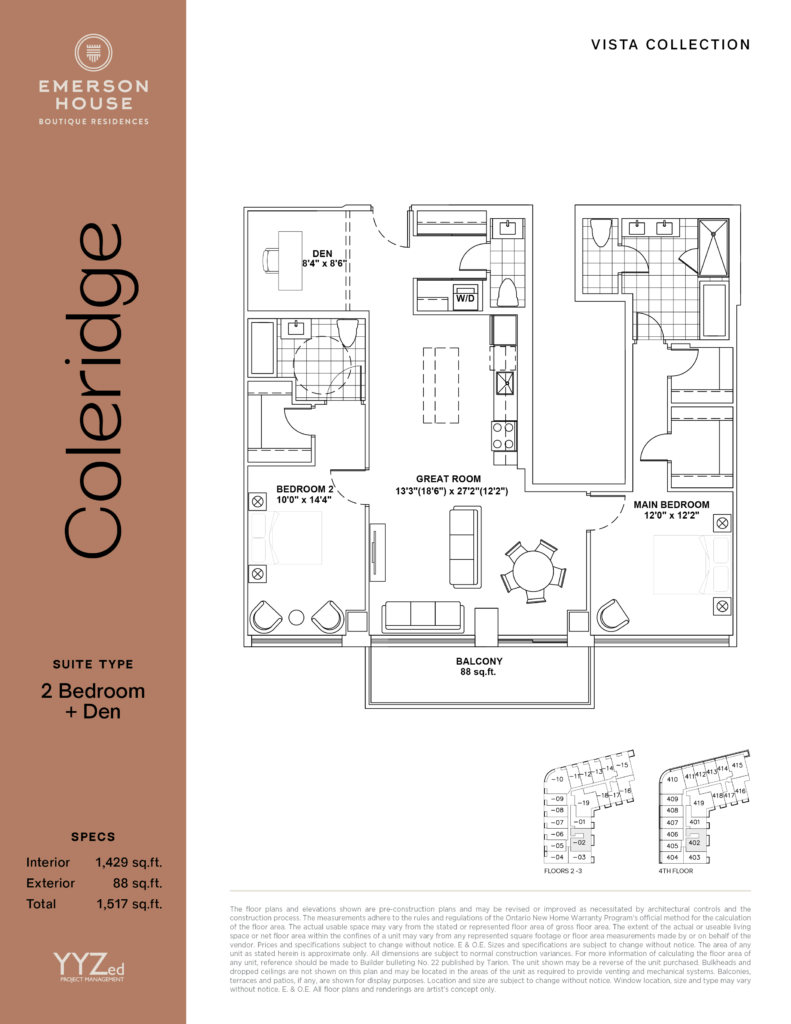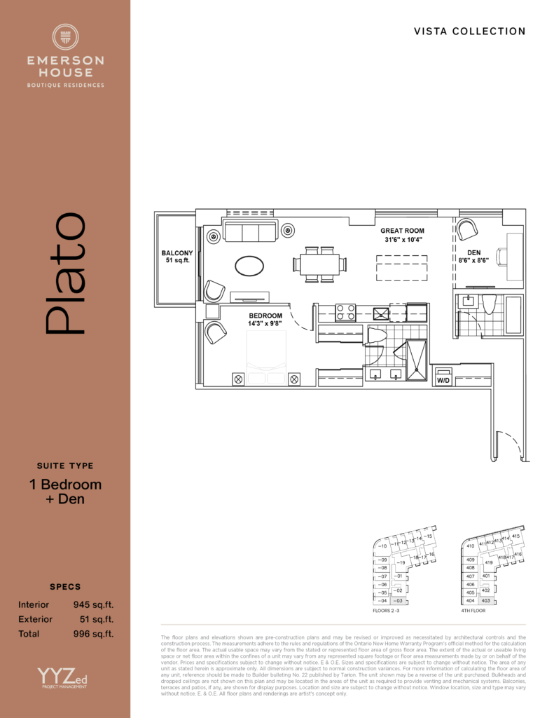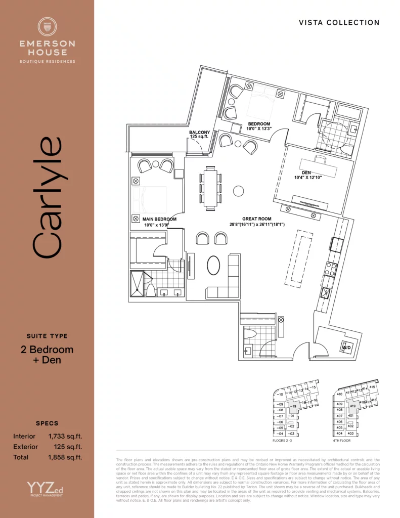 Emerson House is a modern and sophisticated residential building in the heart of Mississauga, Ontario. It offers a comfortable and convenient living experience with a range of amenities, modern features, and a desirable location. With 1, 2 and 3 bedrooms with optional den, ranging in size from 767 to 2,555 square feet, Emerson House provides a variety of options to fit your lifestyle. Enjoy a fitness centre, party room, and rooftop terrace with BBQ stations, or take advantage of the building's energy-efficient design.