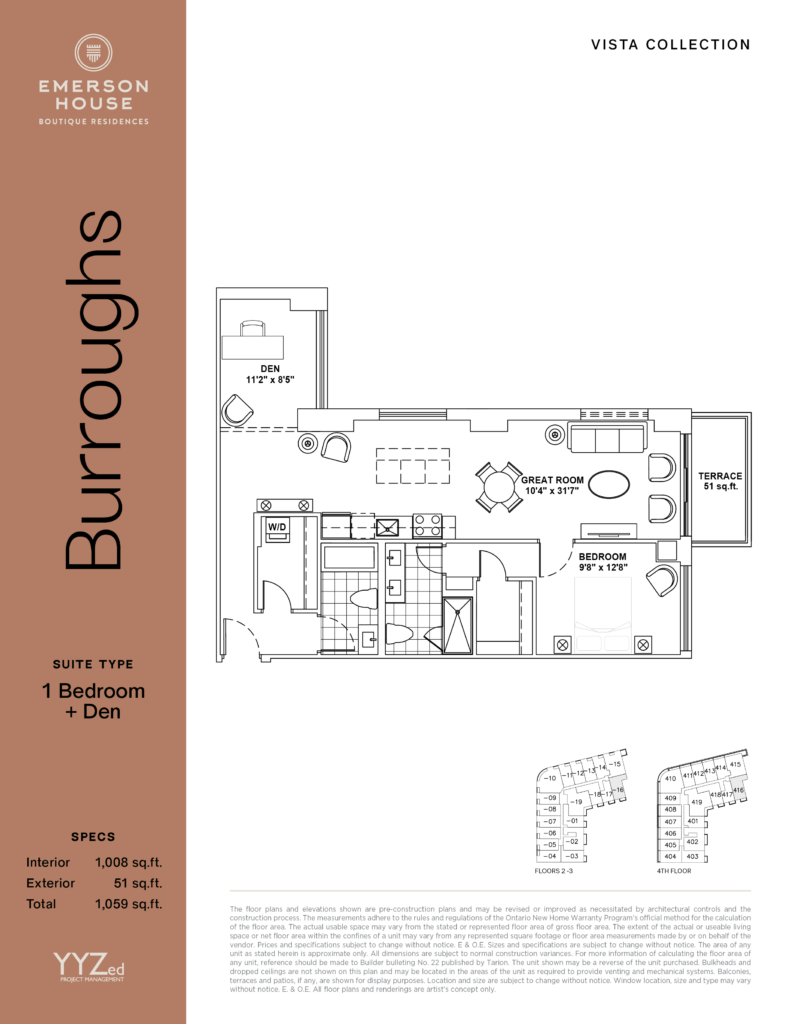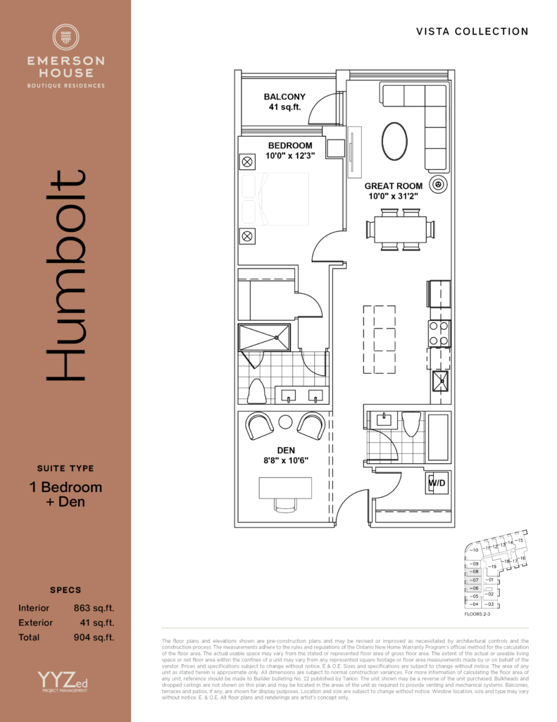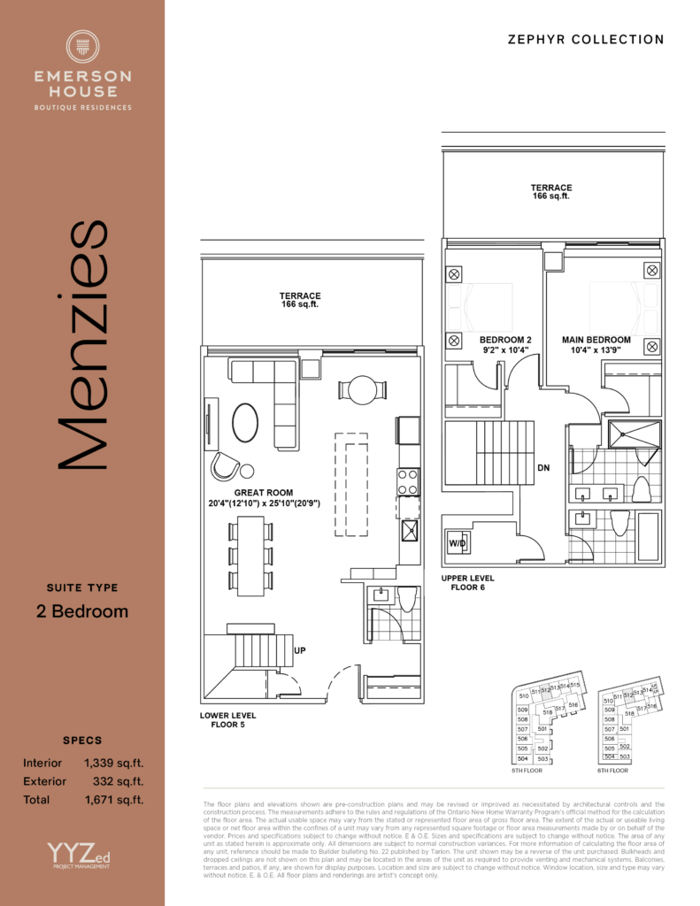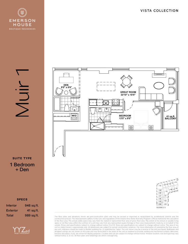 The development features a contemporary architectural design, with a mix of one, two, and three-bedroom units spread across nine storeys. Amenities include a fitness centre, rooftop terrace, party room, and concierge. Located near major highways, public transit, shopping, dining, and the University of Toronto Mississauga campus, Emerson House is the perfect place to call home in the Greater Toronto Area.