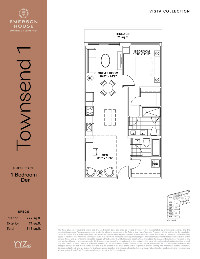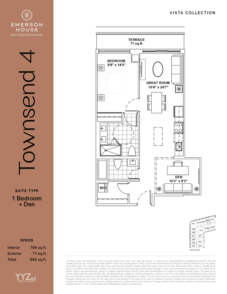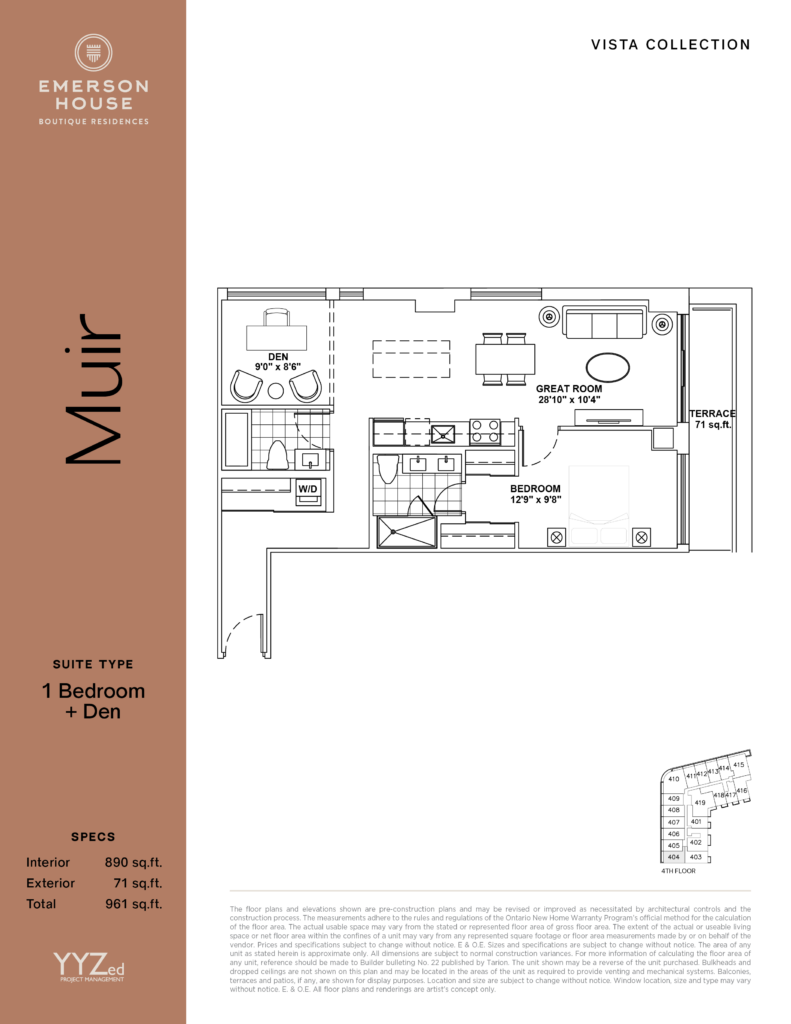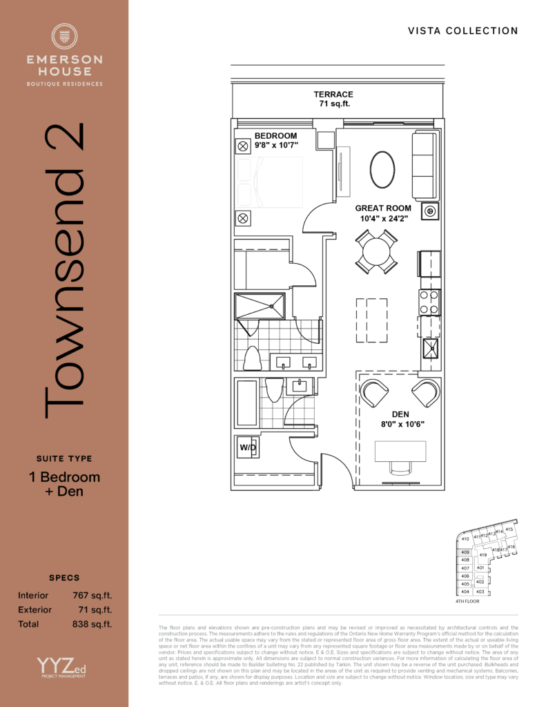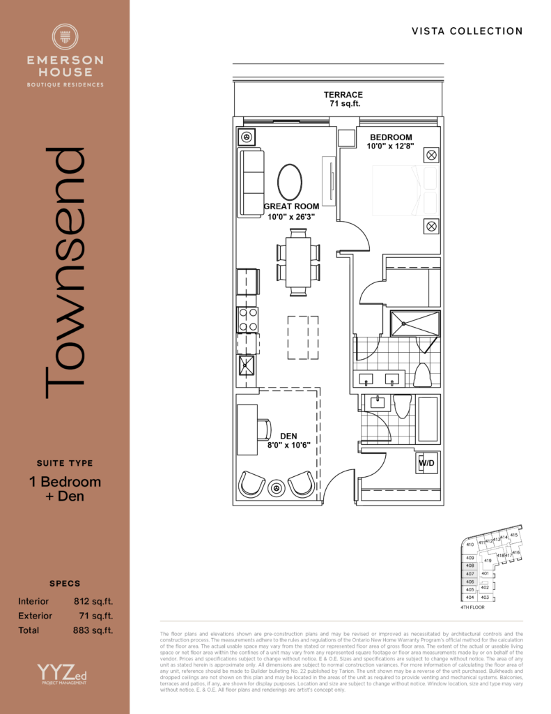 The development features a contemporary architectural design, with a mix of one, two, and three-bedroom units spread across nine storeys. Amenities include a fitness centre, rooftop terrace, party room, and concierge. Located near major highways, public transit, shopping, dining, and the University of Toronto Mississauga campus, Emerson House is the perfect place to call home in the Greater Toronto Area.