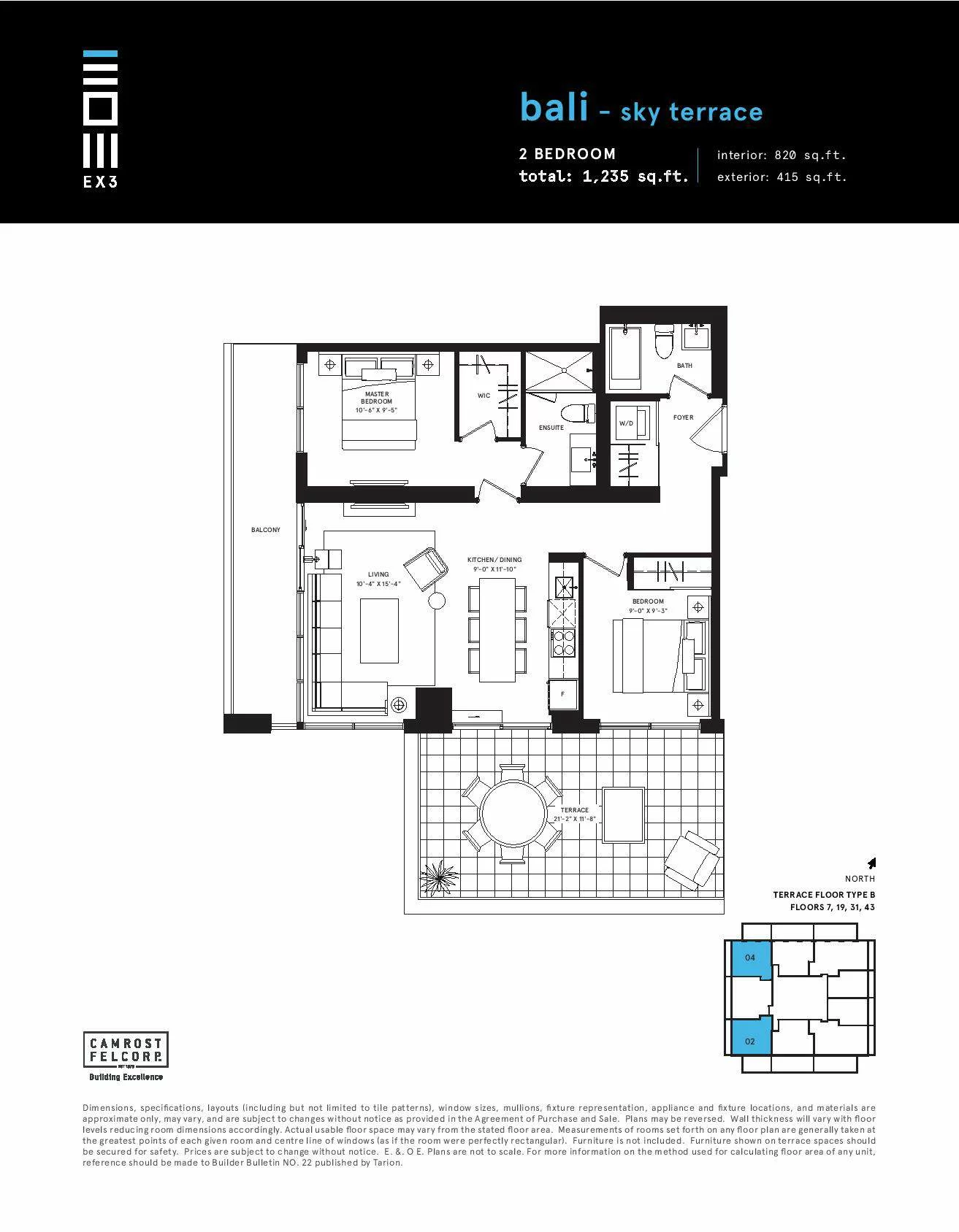 | Plan | Suite Name | Suite Type | Bath | SqFT | Price | Terrace | Exposure | Availability | |