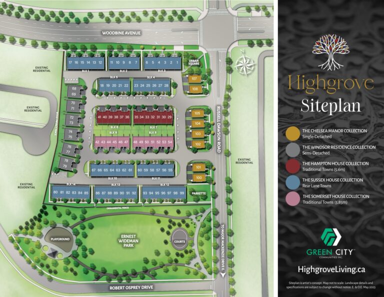 Welcome to Highgrove by Green City, an extraordinary residential community nestled in the heart of West Markham. Experience the epitome of luxury living with our exceptional collection of singles, towns, and semis. Our architectural marvels embody elegance and sophistication, setting a new standard for refined living. Situated in a visionary neighbourhood, Highgrove is conveniently located within walking distance of shopping centres, renowned restaurants, and esteemed educational institutions, including a local public school and two prestigious Montessori schools. Surrounded by lush parkland and adjacent to the esteemed Cachet Estates, Highgrove offers a lifestyle of unparalleled grandeur. Prepare to embrace a life polished to perfection at Highgrove.