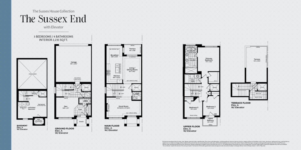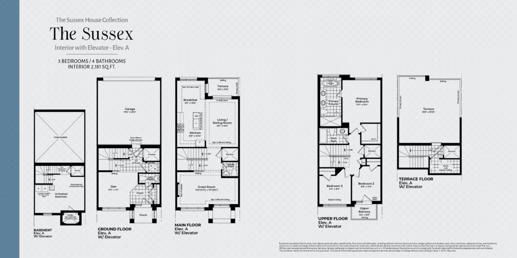 | The Sussex Interior with Elevator - Elev A | 3 | 4 | 2,181 |