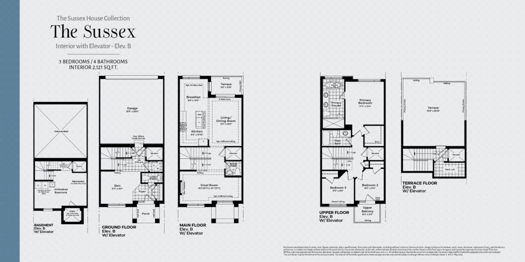 | The Sussex Interior with Elevator - Elev B | 3 | 4 | 2,121 |