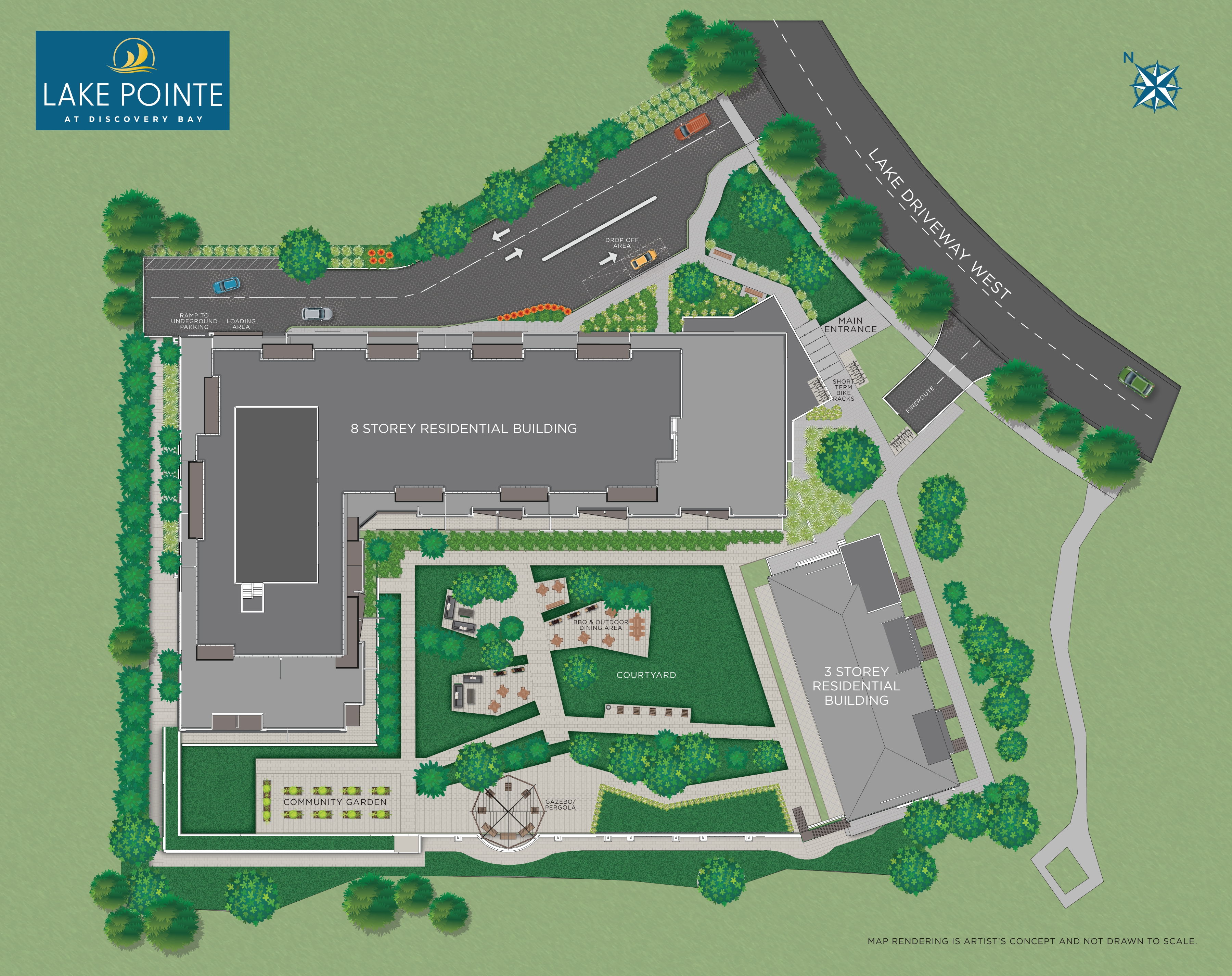 Lake Pointe features an 8-storey boutique-style building with 172 condo units and 15 townhomes.