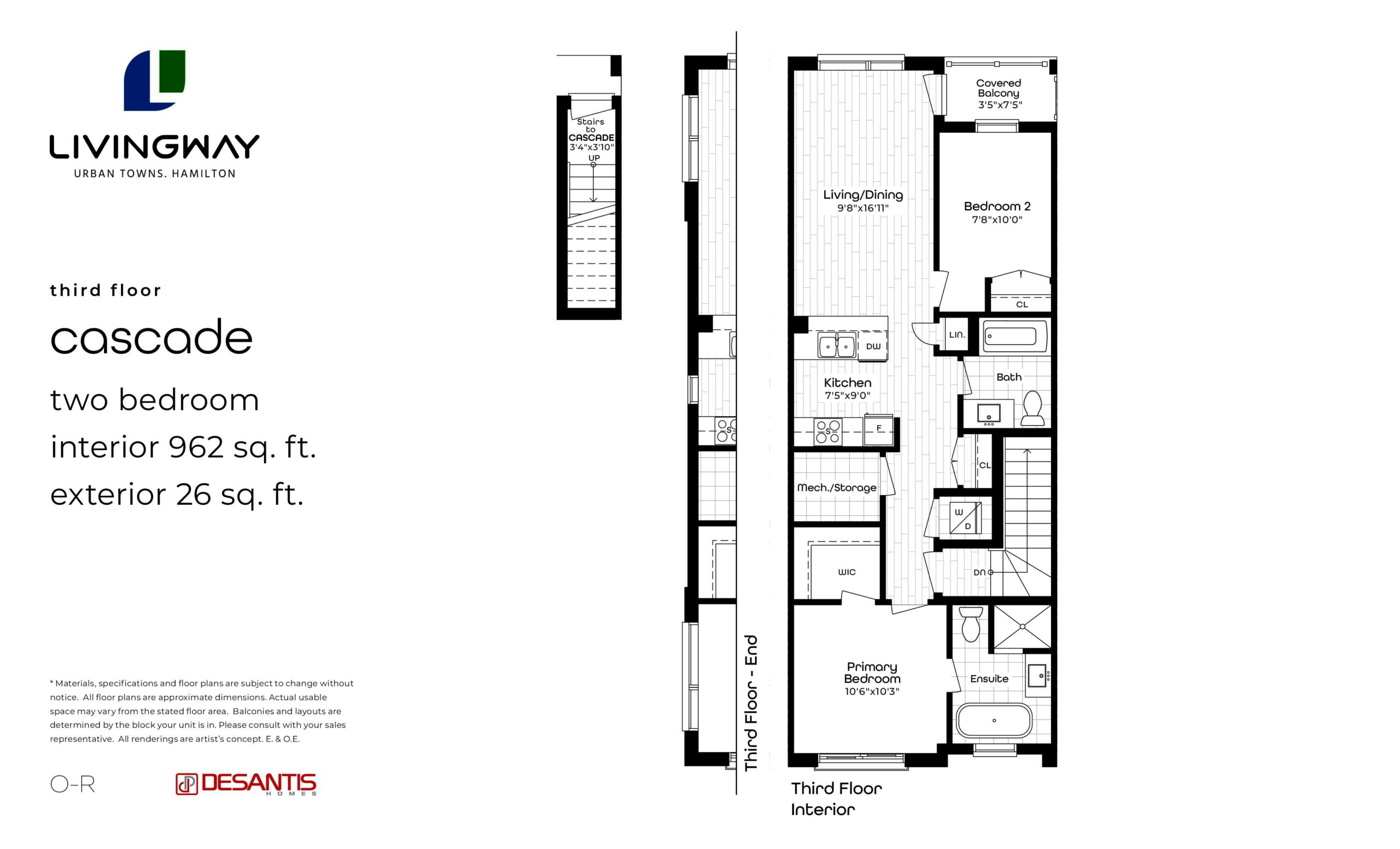 Livingway is a new stacked townhomes development by DeSantis Homes. Prices estimated to be starting from $500,000 and will feature 454 units at 5 storeys. Livingway is estimated to be completed in 2024 and will be located on at the Winona neighbourhood in Hamilton.