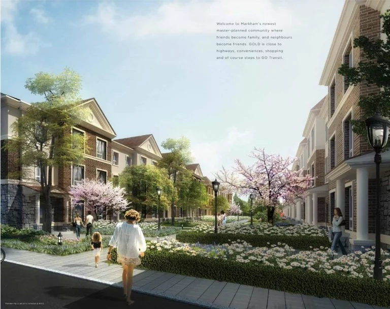 Markham GOLD is a new masterplan townhome community by Sunny Communities. Prices estimated to be starting from $700,000 and Up. The townhome community will be near parks and trails such as Ralph Chalmers Park & Wismer Park. Walking distance to the Mount Joy GO Station which will take you to Downtown Toronto's Union Station. Nearest highways would be HWY 407 & 404 taking you to other beautiful neighbourhoods in the city. Markham GOLD is estimated to be completed in 2021 and will be located on Major Mackenzie Drive East & Markham Road in the Greensborough neighbourhood in Markham.