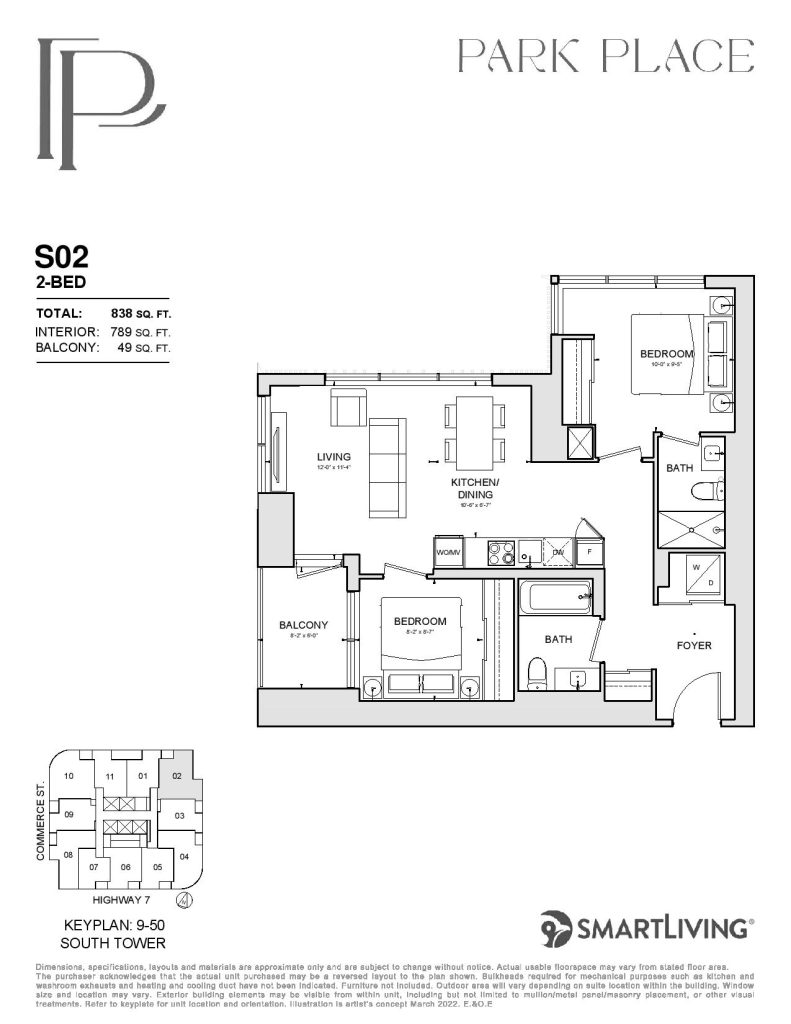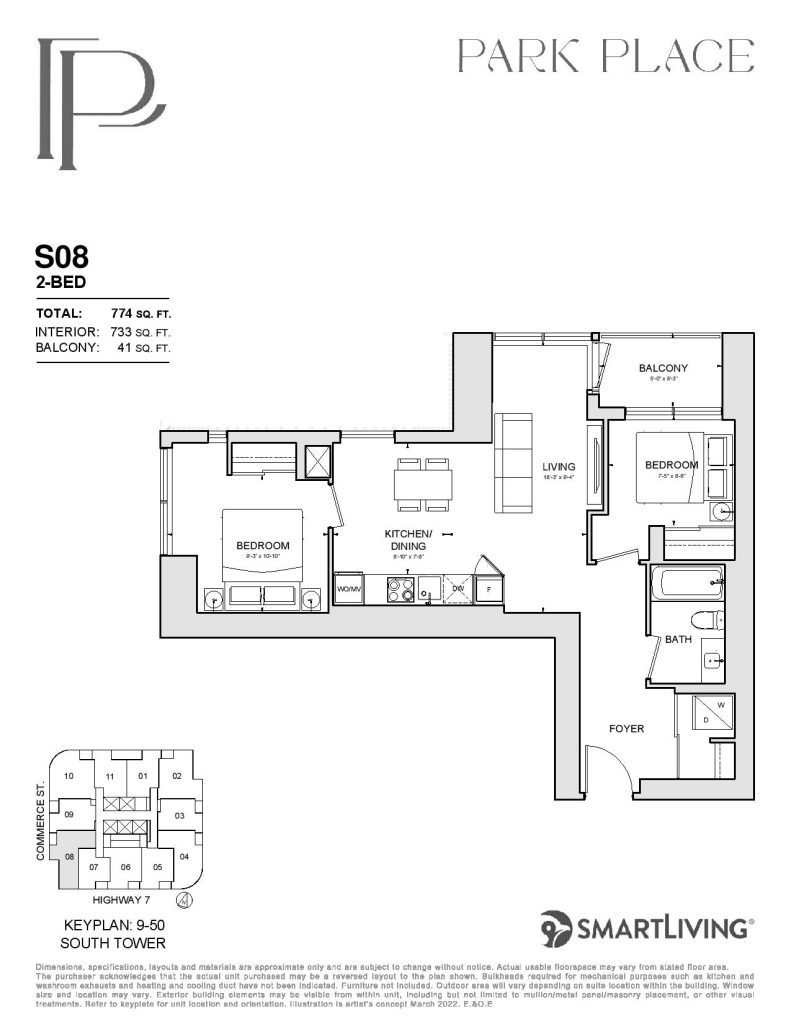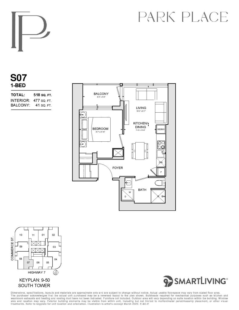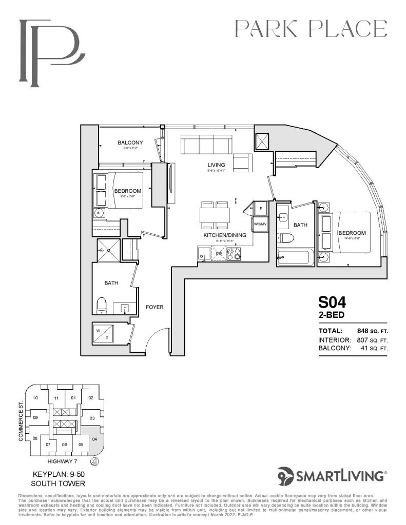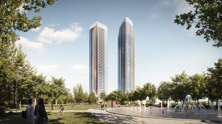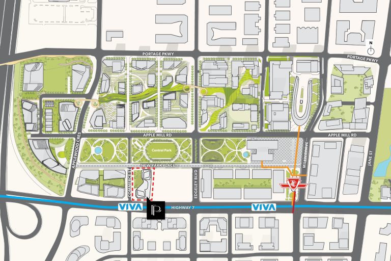 Park Place is a new condo development by SmartLiving. Featuring 1100 units at 48 and 56 storeys of mixed-use condominium community soon to rise at a 9-acre Central Park. Park Place is located in the SmartVMC, offering a wide selection of dining, shopping, and only steps away from transits. VMC also provides many pedestrian-friendly trails through green space and parks. The project is estimated to be completed on November 2026 and will be located along Commerce Street & Highway 7, Vaughan.