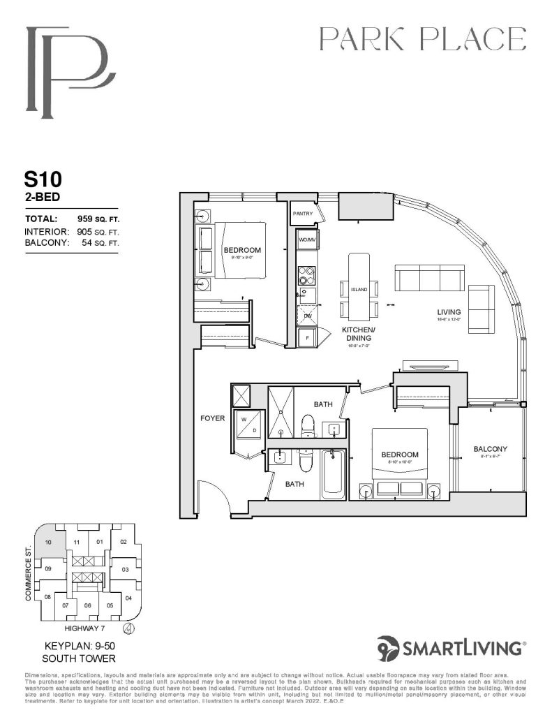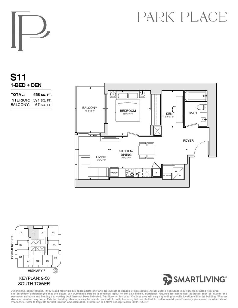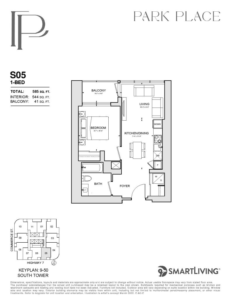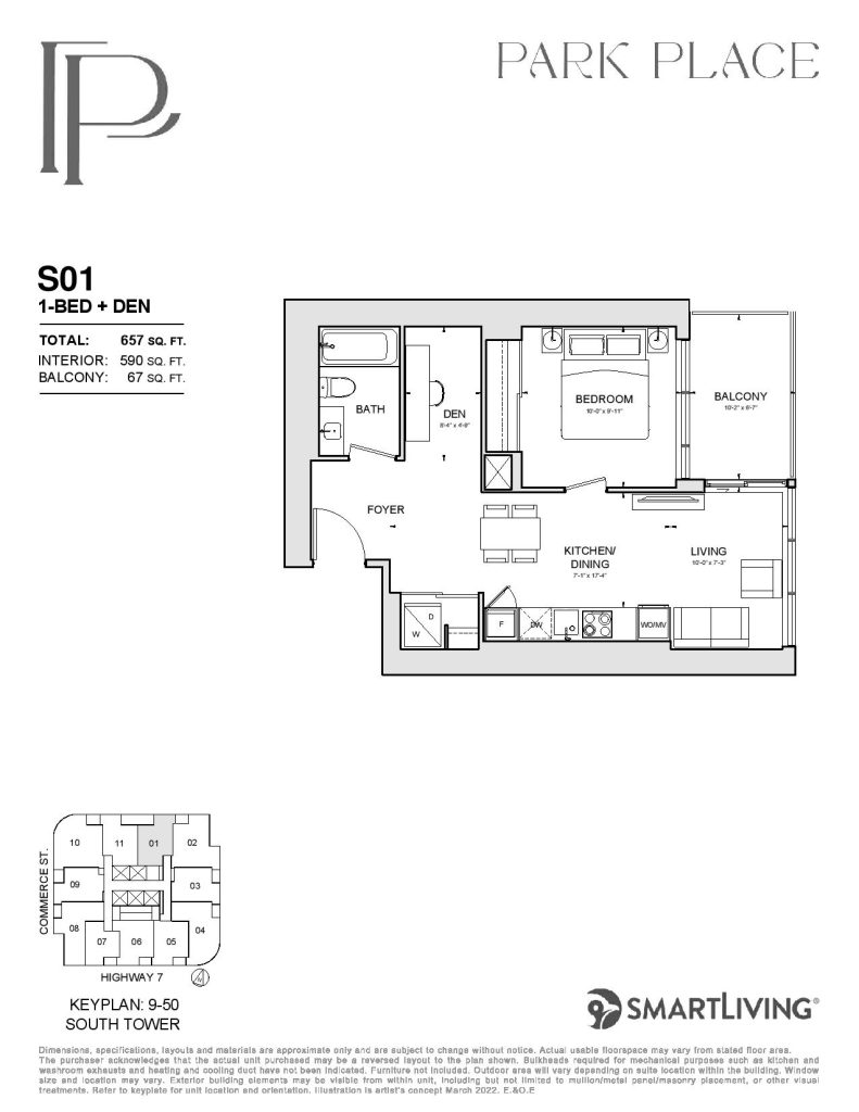 Park Place is a new condo development by SmartLiving. Featuring 1100 units at 48 and 56 storeys of mixed-use condominium community soon to rise at a 9-acre Central Park. Park Place is located in the SmartVMC, offering a wide selection of dining, shopping, and only steps away from transits. VMC also provides many pedestrian-friendly trails through green space and parks. The project is estimated to be completed on November 2026 and will be located along Commerce Street & Highway 7, Vaughan.