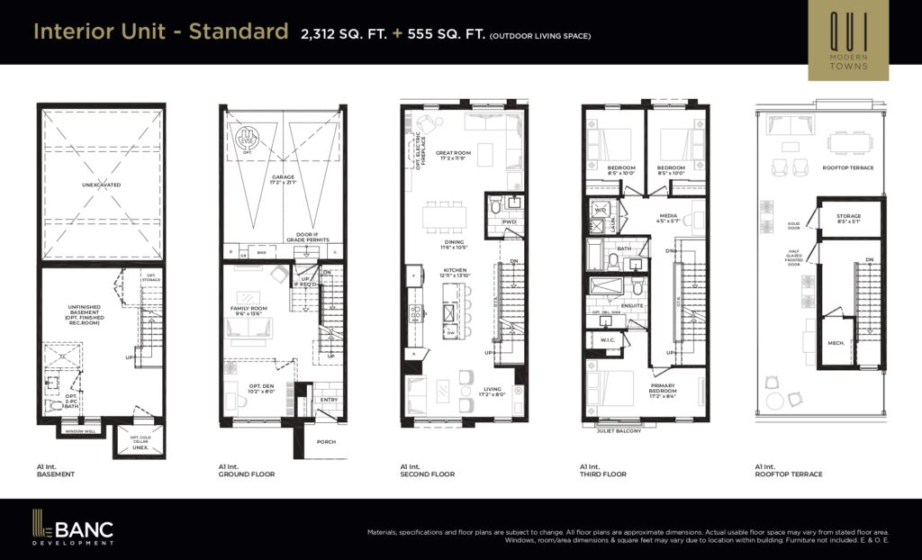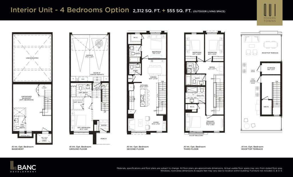 | Interior Unit - 4 Bedrooms Option | 4 | 3.5 | 2,312 | - |