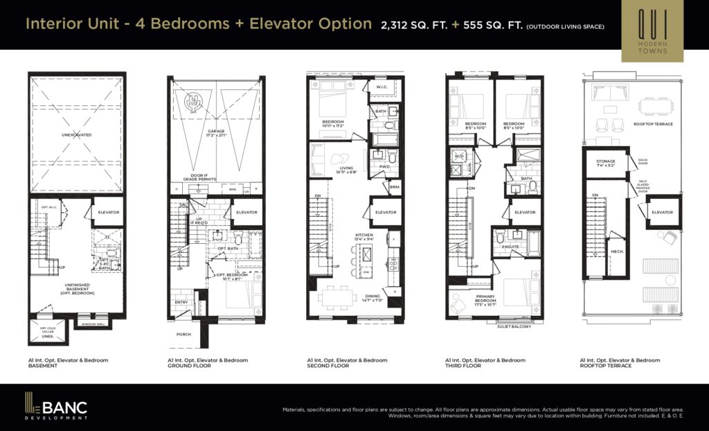 Interior Unit - 4 Bedrooms + Elevator Option | 4 | 3.5 | 2,312 | - | - | - | - | Reserve Now |