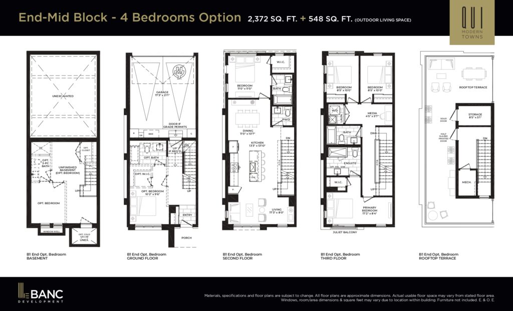 | End-Mid Block - 4 Bedrooms Option | 4 | 3.5 | 2,372 | - |