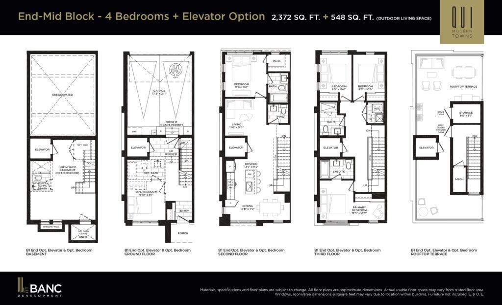 | End-Mid Block - 4 Bedrooms + Elevator Option | 4 | 3.5 | 2,372 | - |