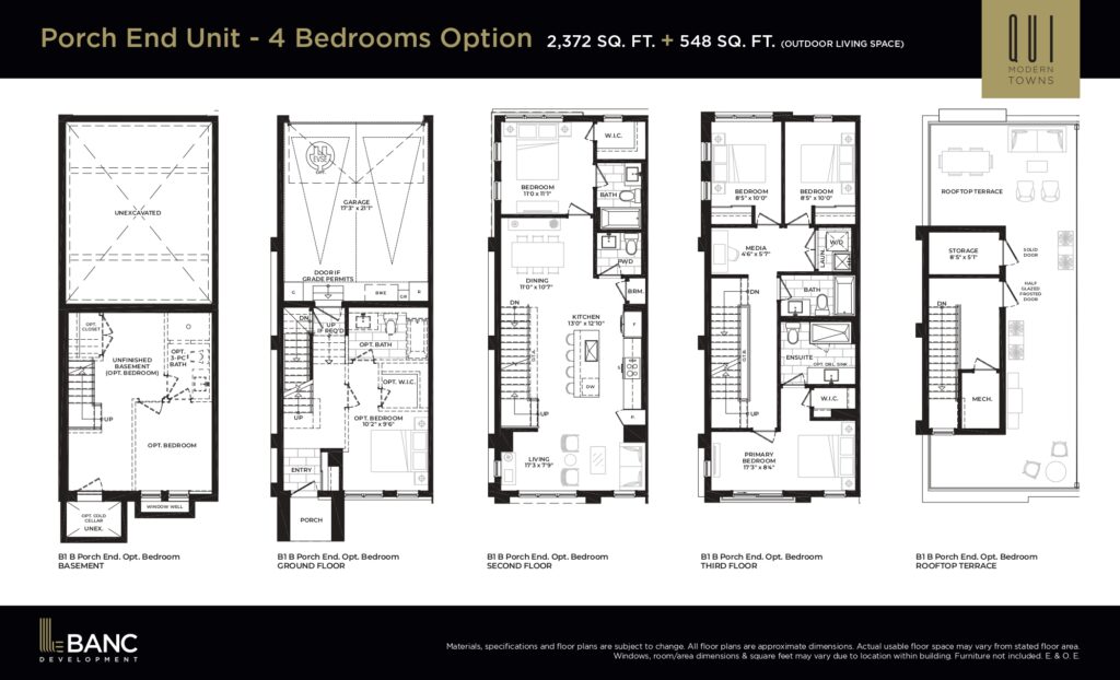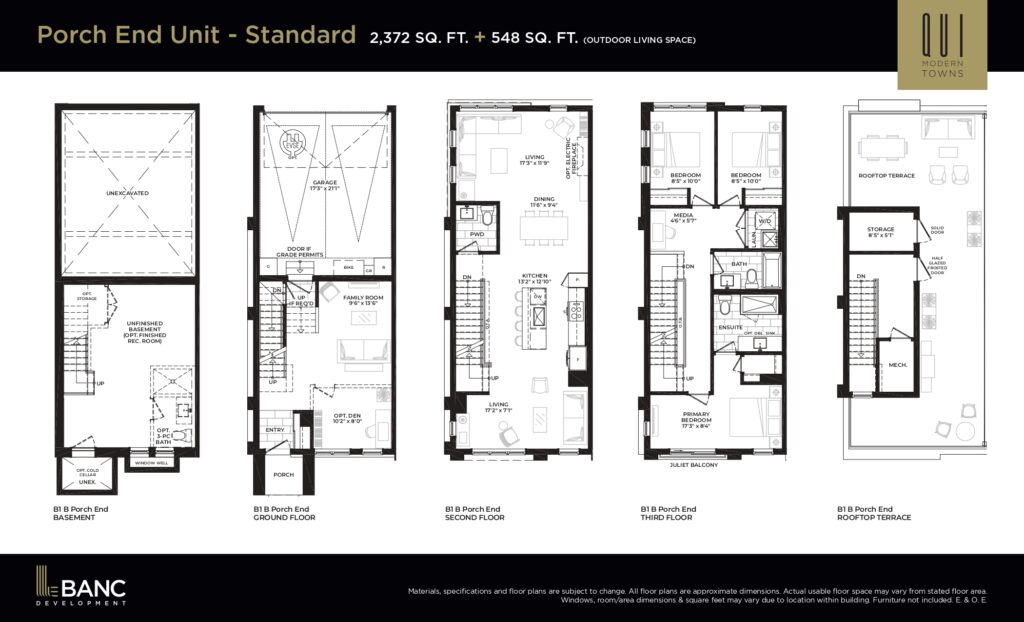 | Porch End Unit - 4 Bedrooms Option | 4 | 3.5 | 2,372 | - |