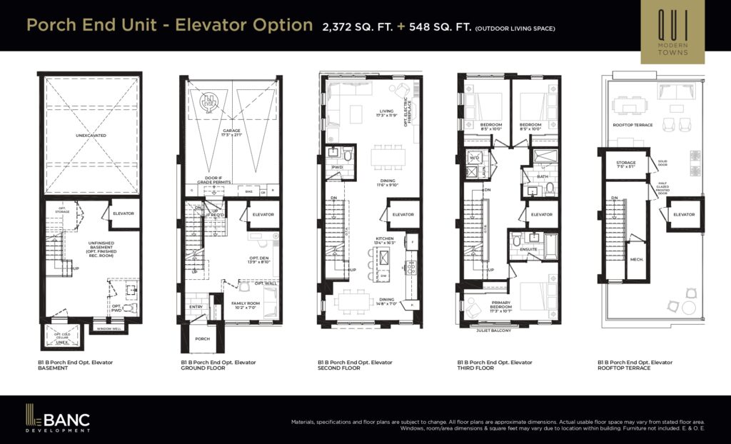 | Porch End Unit - Elevator Option | 3 | 2.5 | 2,372 | - |