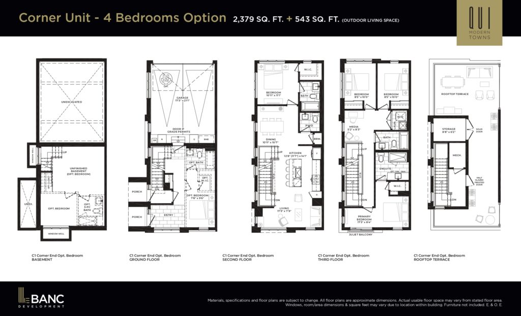 | Corner Unit - 4 Bedrooms Option | 4 | 3.5 | 2,379 | - |