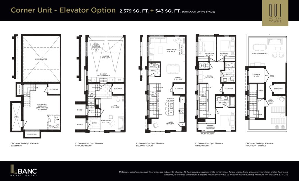 | Corner Unit - Elevator Option | 3 | 2.5 | 2,379 | - |