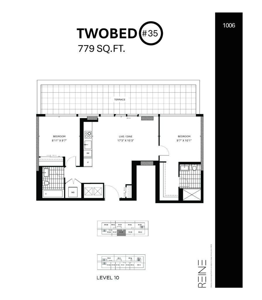 | Two Bed #35 | 2 | 2 | 779 |