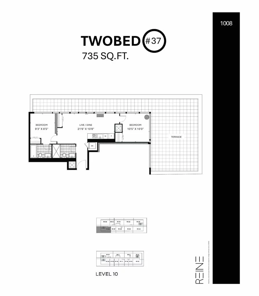 | Two Bed#37 | 2 | 2 | 735 |