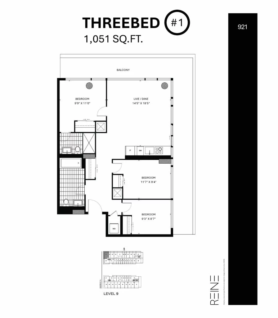 | Three Bed #1 | 3 | 2 | 1,051 |