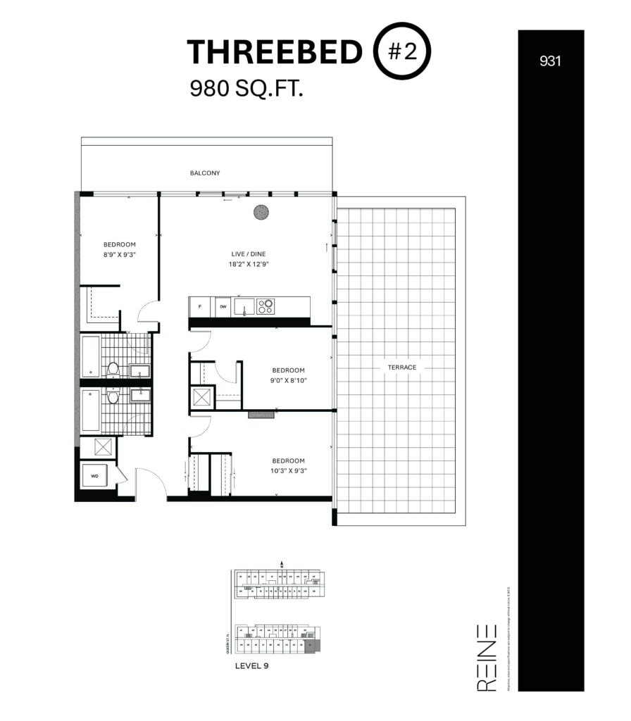 | Three Bed #2 | 3 | 2 | 980 |