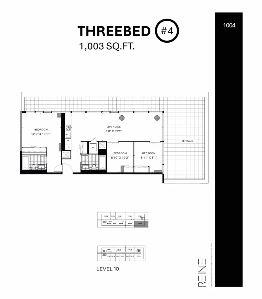 | Three Bed #4 | 3 | 2 | 1,003 |