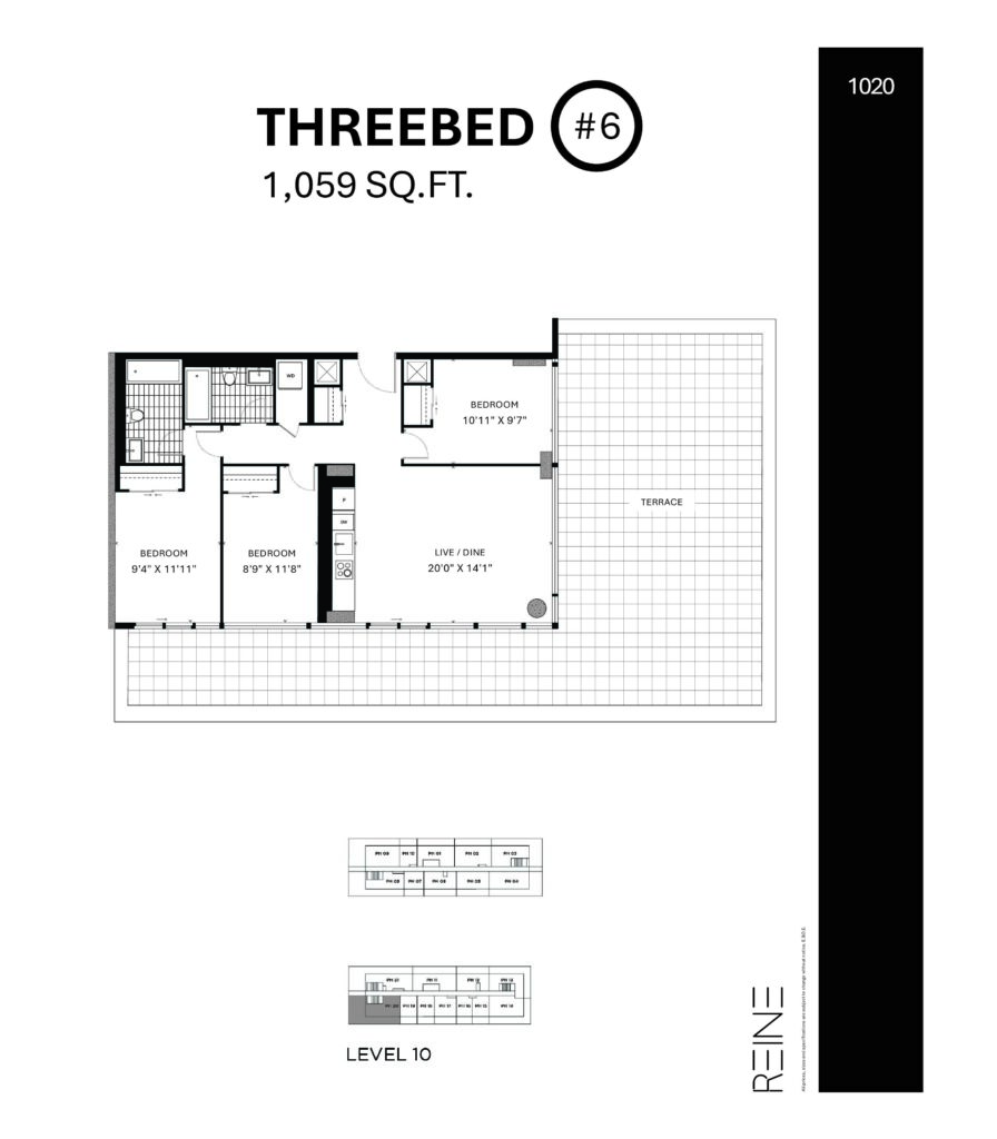 | Three Bed #6 | 3 | 2 | 1,059 |
