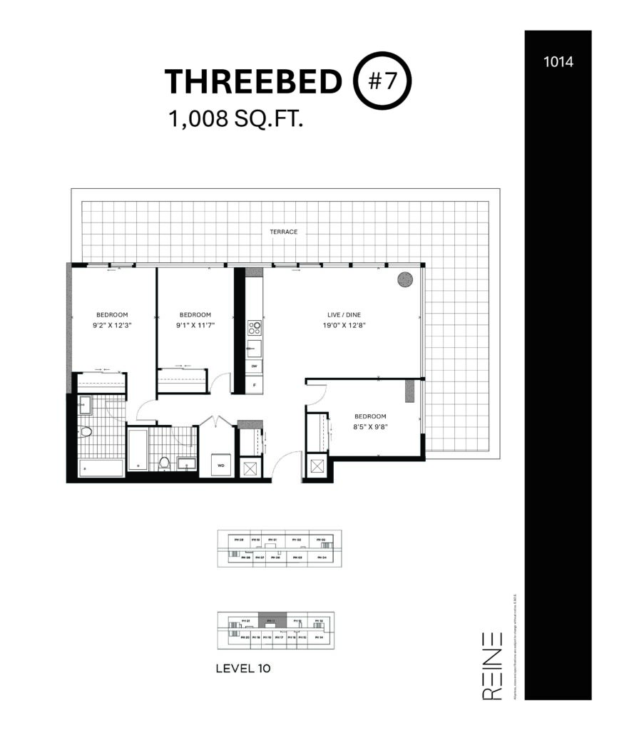 | Three Bed #7 | 3 | 2 | 1,008 |