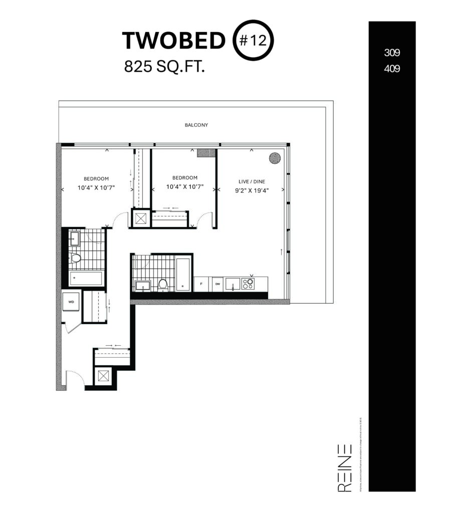 | Two Bed #12 | 2 | 2 | 825 |