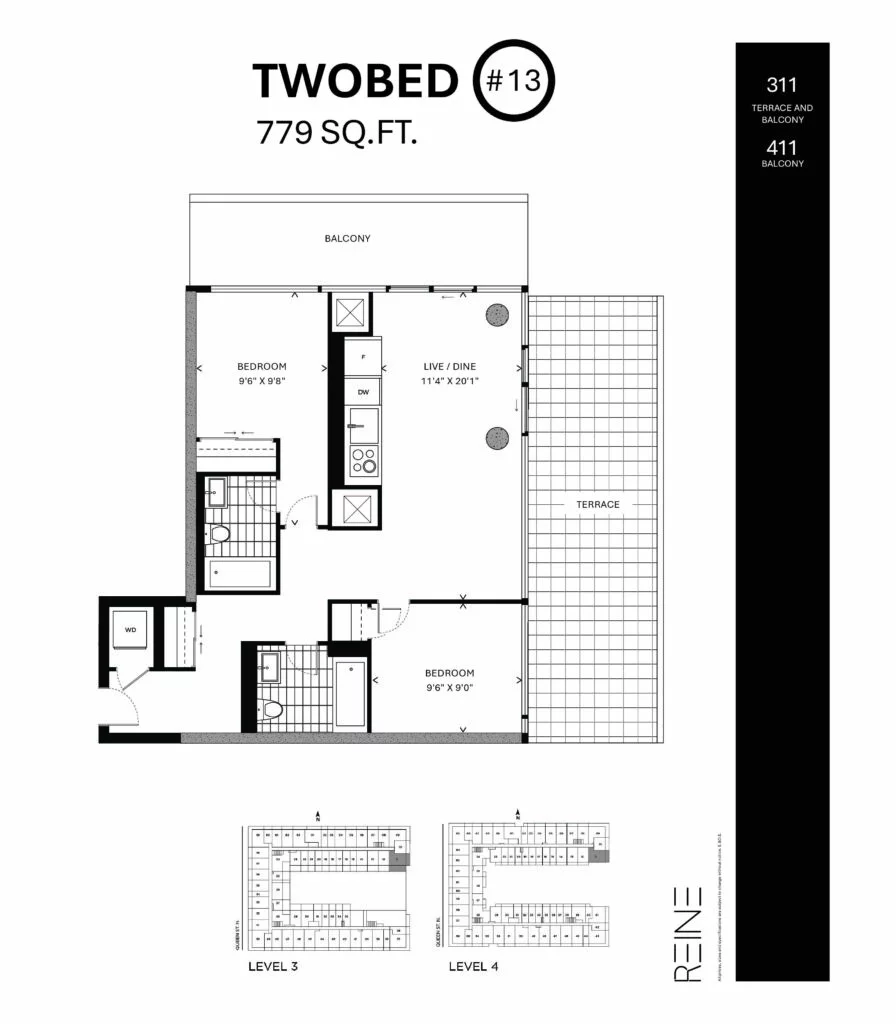 | Two Bed #13 | 2 | 2 | 779 |