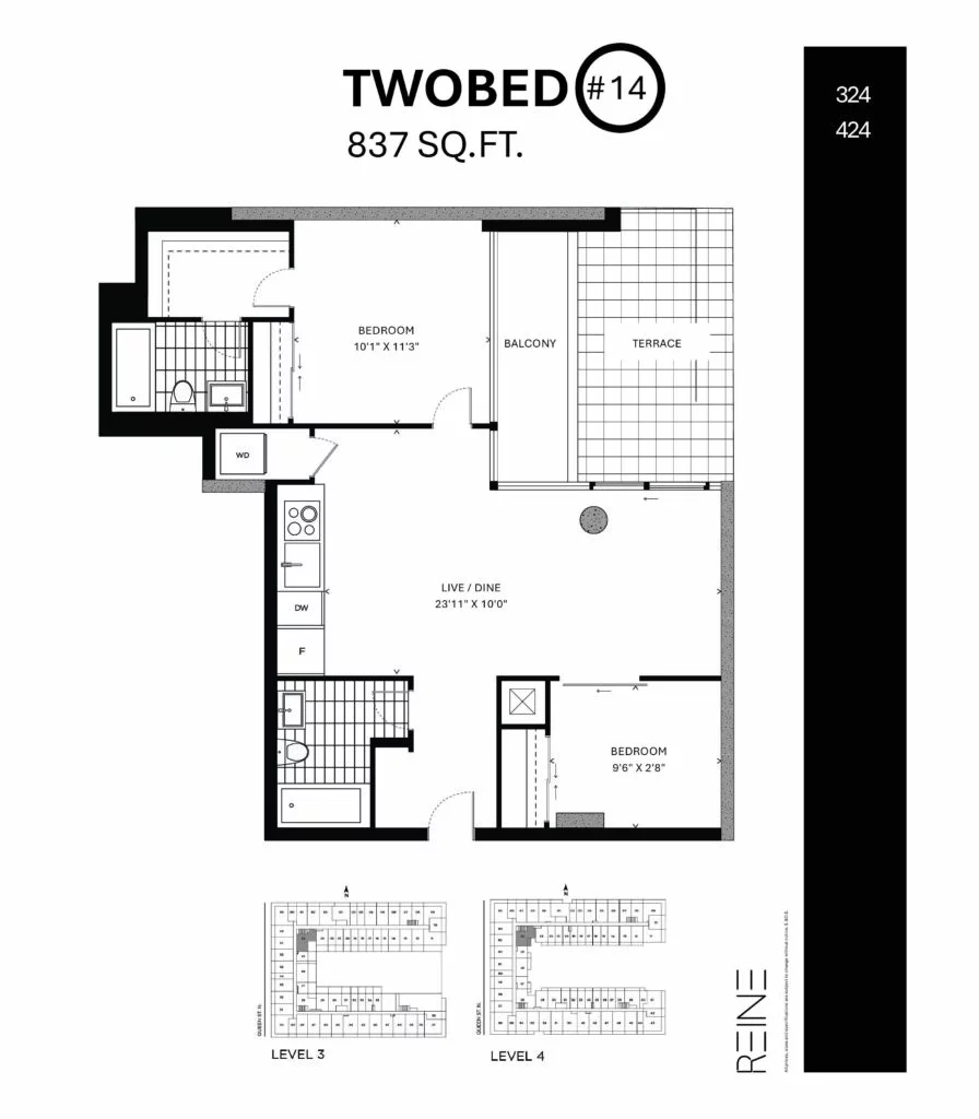 | Two Bed #14 | 2 | 2 | 837 |