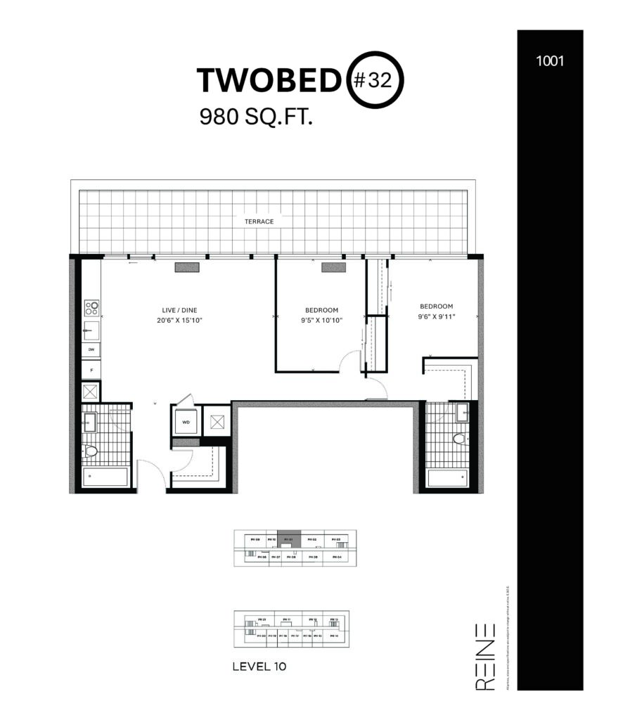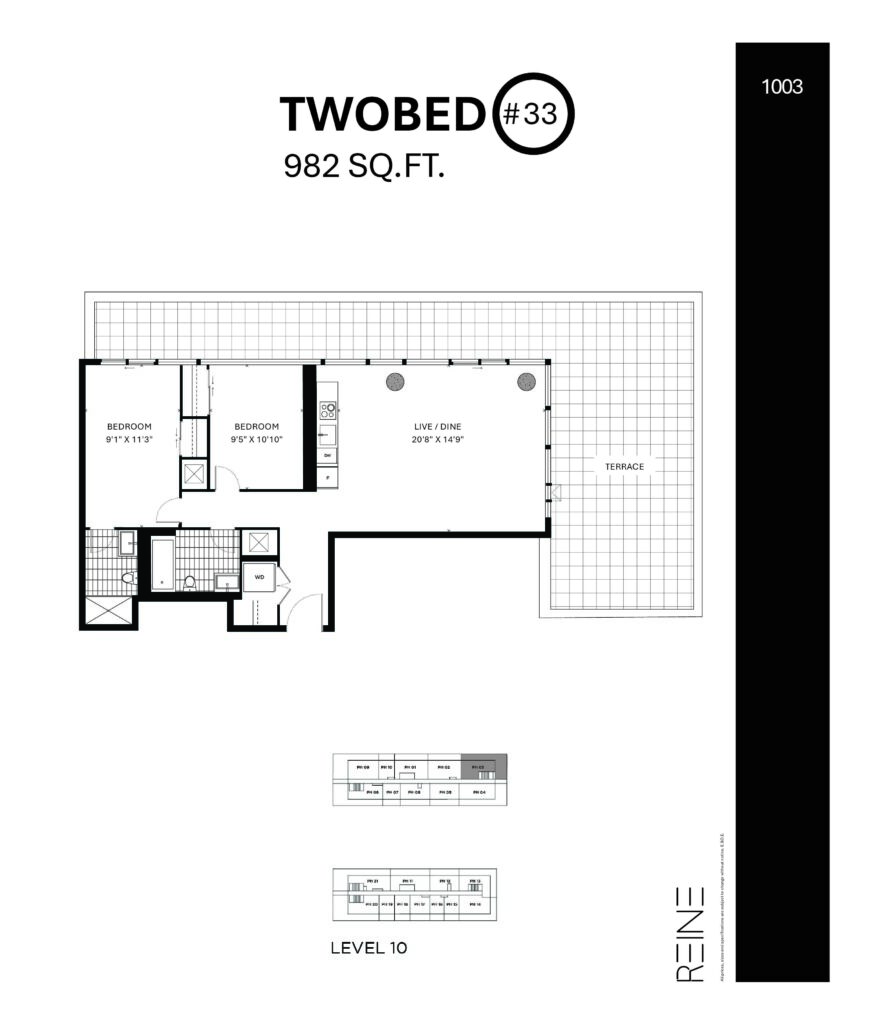 | Two Bed #33 | 2 | 2 | 982 |