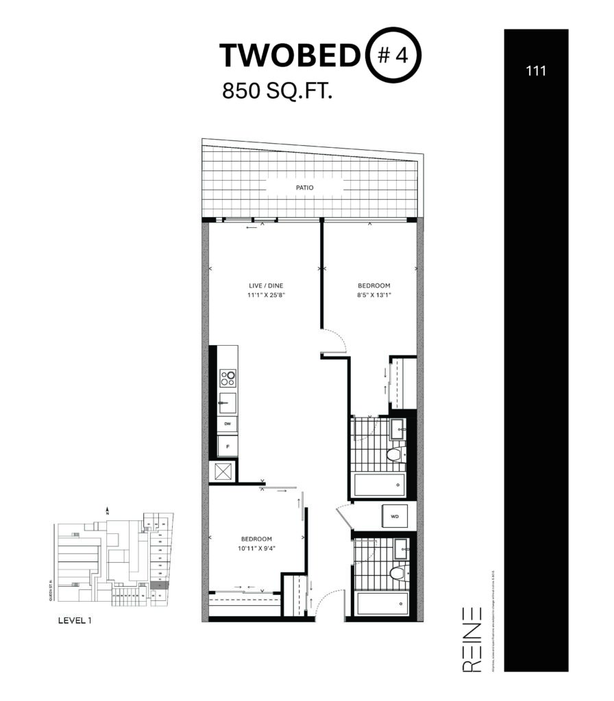 | Two Bed #4 | 2 | 2 | 850 |