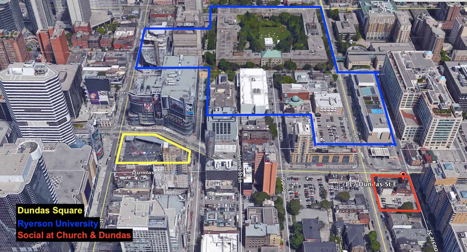 Social Condos is a new high-rise condo development by Pemberton Group. Prices estimated to be starting from the high $400,000's to over $1,000,000. The project will feature a mix of 602 one to three-bedroom condo units over 52 storeys and almost all errands can be done by walking or bike, the development is accessed easily by transit (College TTC Station) and walking distance to Ryerson University and Dundas Square, nearby parks include Trinity Park and Labyrinth and Moss Park. Social Condos will be located on 117 Dundas Street East in Toronto.