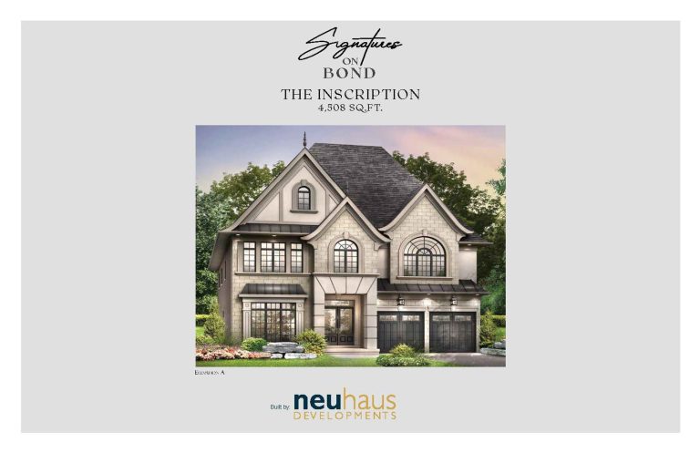 The Signatures is a new single family home development by Neuhaus Developments. Featuring 6 exclusive semi-custom homes with 4 - 6 bedroom options ranging from 3508 - 4508 Sqft. The Signatures is close to Oak Ridge Corridor Conservation Reserve, Bond Lake, and Lake Wilcox Park. There are groceries, dining options, and pharmacy within close proximity but residents can also access Hwy 404 or take the transit from the stations nearby to go to the city centre for more amenities. The project is estimated to be completed on 2024 and will be located in 74 Bond Crescent, Richmond Hill.
