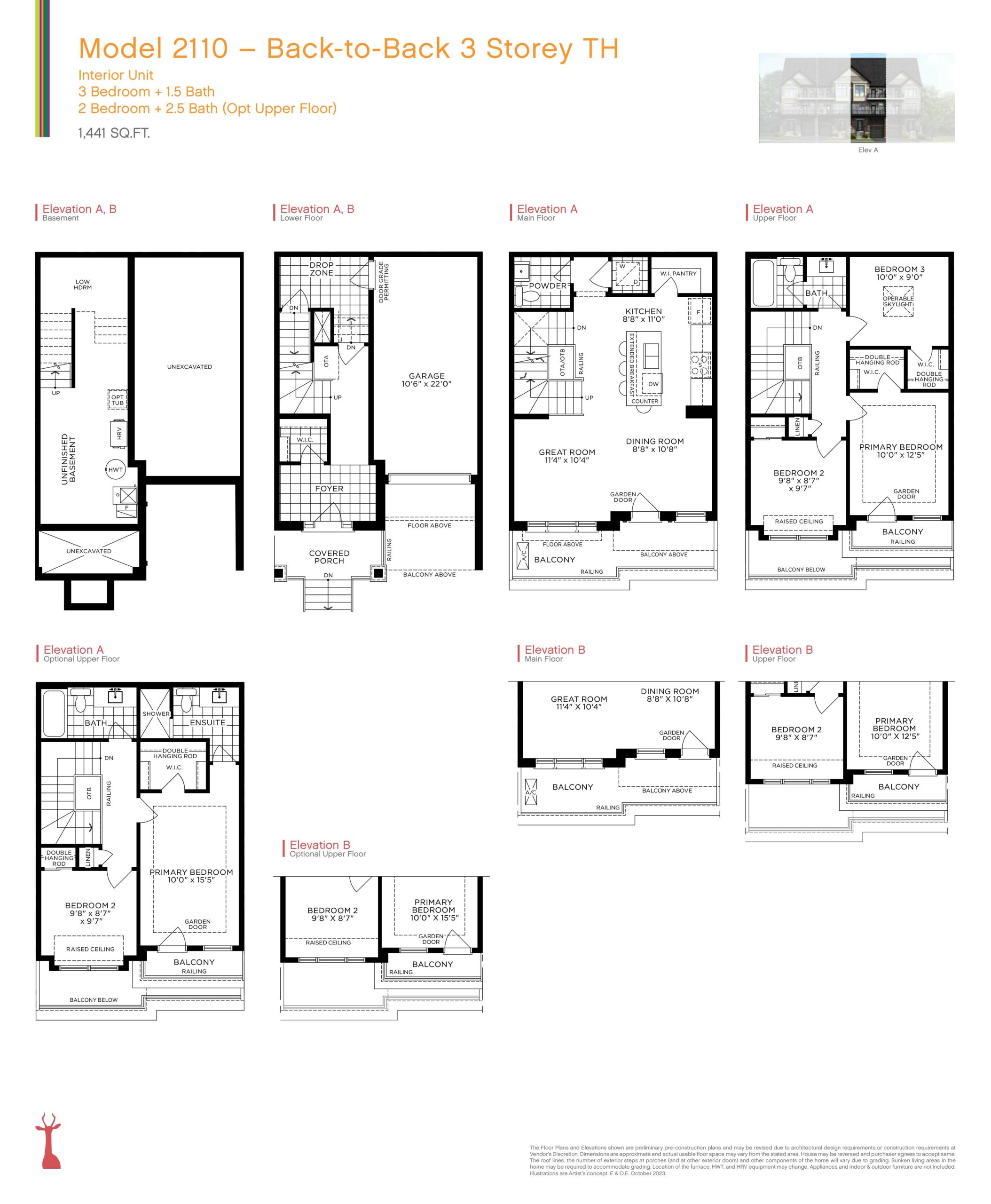 | Model 2110 – Back-to-Back 3 Storey TH | 3 | 2.5 | 1,441 | - |