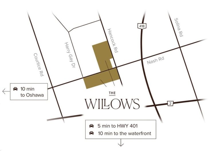 Situated at the intersection of Hancock Road and Nash Road in Courtice, The Willows offers a prime location for suburban living, blending tranquility with convenience.