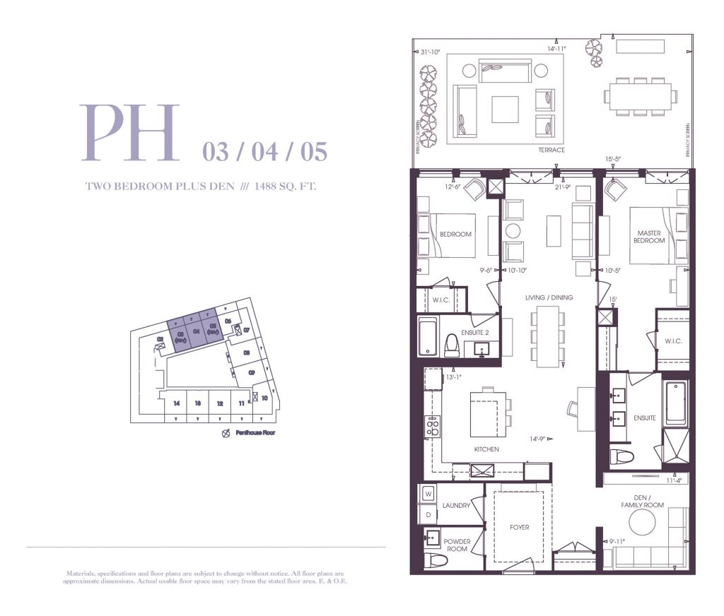| Plan | Suite Name | Suite Type | Bath | SqFT | Price | Terrace | Exposure | Availability | |