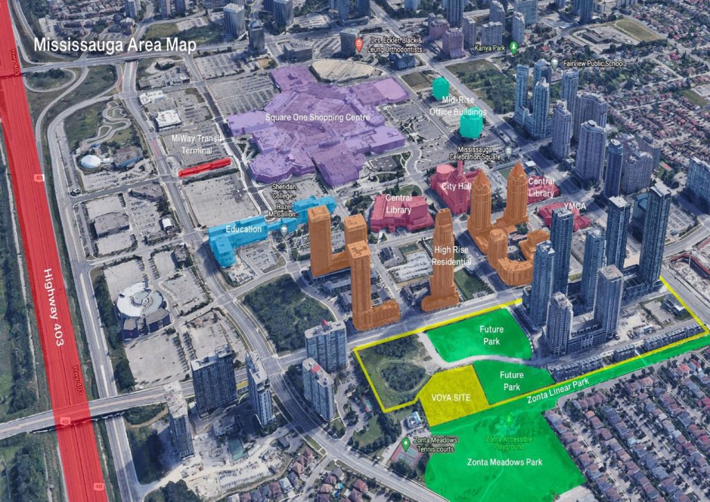 VOYA is a new high-rise condo development by Amacon which features a total of 930 units within two towers. Tower 1 will consist of 42 storeys and 36 in Tower 2, offering 1-3 bedroom suites ranging from 446 sq. ft. to 922 sq. ft. VOYA is nearby Zonta Meadows Park and the Future Parkside Village Park. It's 500m to the Civic Centre and 1.2km to the City Centre Transit Hub with the Future Hurontario LRT that will soon be available as another transit option. The village offers a vast option of amenities such as T&T Supermarket, Credit Valley Hospital, and Square One Shopping Centre to name a few. Residents will have wide selection of schools to choose from as the VOYA will be surrounded by many great schools both private and public. The project is estimated to be completed in 2024 and will be located on theĀ Northwest end of the Parkside Village community in Mississauga.