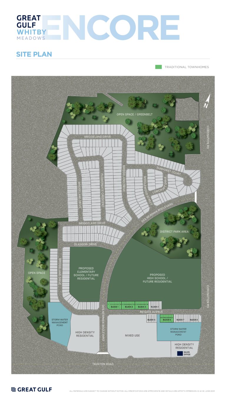 Whitby Meadows is a new semi-detached townhomes development by Great Gulf. Prices estimated to be starting from $955,990 - $1,085,990. Whitby Meadows is nearby Kiwanis Heydenshore Park and the Whitby Go Station, the project is estimated to be completed in 2025 and will be located on 4120 Coronation Rd at the Williamsburg neighbourhood in Whitby.