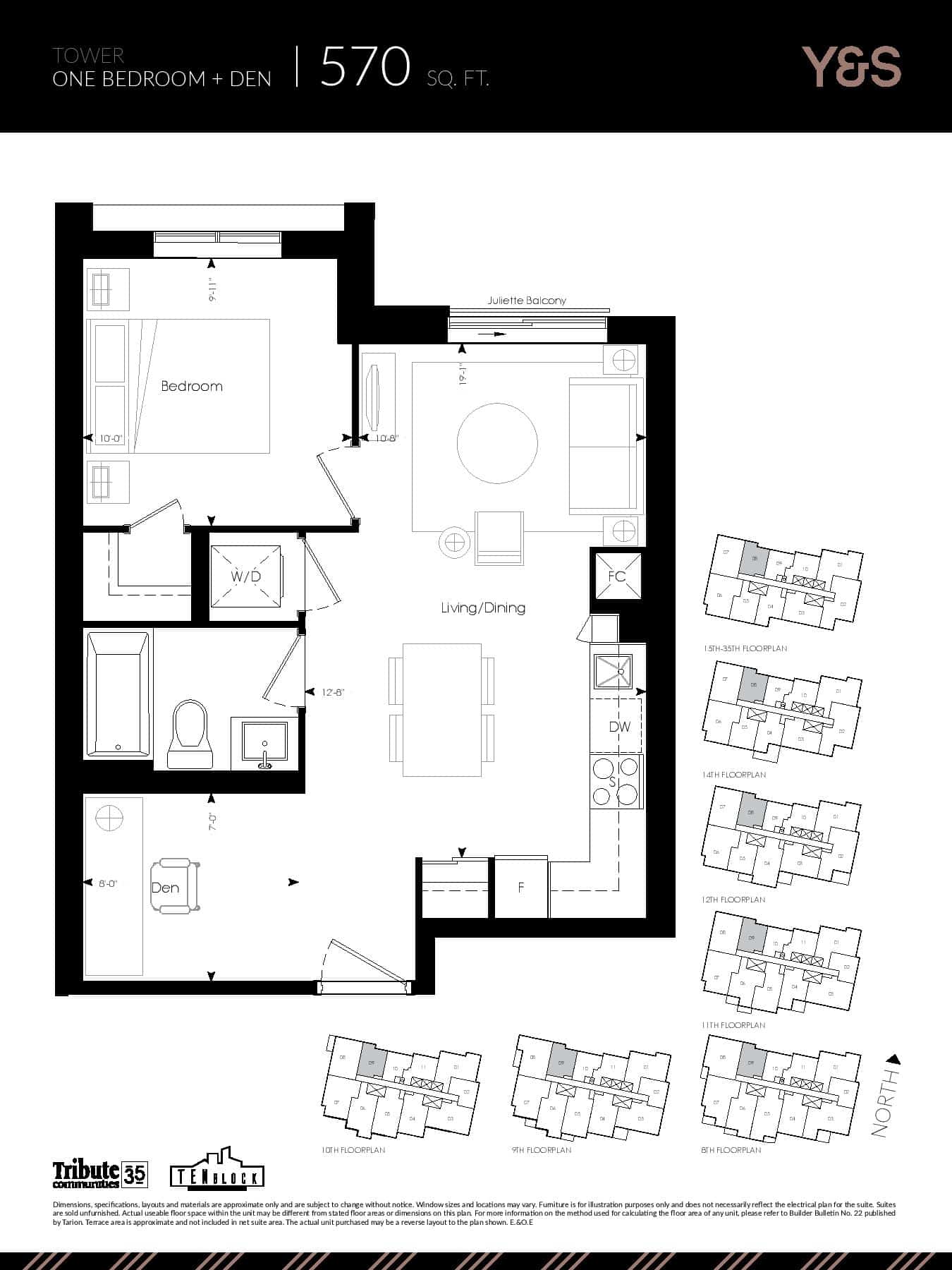 | ONE BEDROOM + DEN | 1 | 1 | 570 | - |
